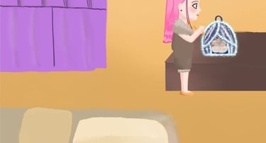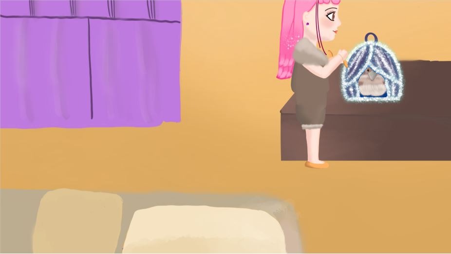 Mazell exchanges her prize for a beautiful, sparkling cage—a cozy, warm home for Duck Duck.